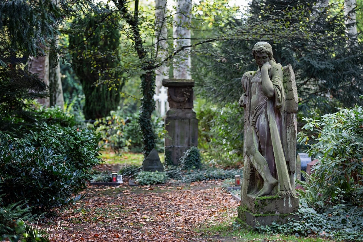 Obwohl der Todesgenius aus rotem Sandstein schon stark beschädigt ist, sieht man ihm seine ursprüngliche Schönheit noch an. In der rechten Hand hält er Stiele mit Mohnkapseln und auf der Rückseite sind noch die Ansätze der großen Flügel zu erkennen. Leider sind die Inschriften heute nicht mehr oder nur noch teilweise erkennbar, aber folgende Teile lassen sich aus alten Bildern und Schriften rekonstruieren